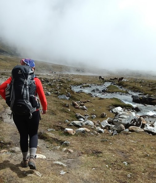 Após umas três horas de caminhada, chegamos a tão desejada parada para o almoço. Nesse momento meu “segredo” foi revelado para algumas pessoas do grupo. Eu estava usando uma bandana, que além de ser nas cores e desenhos da bandeira americana, estava escrito “4 July”. Comprei essa bandana em Cusco, na véspera de início da trilha, única e exclusivamente pela data “4 July”. Já com uma maior interação com o grupo, inclusive com espaços para as piadas ruins do Sergio, e a ciência de boa parte do grupo de que éramos brasileiros, surgiu a pergunta…por que essa bandana? E foi assim que o Sergio contou meu segredo.
