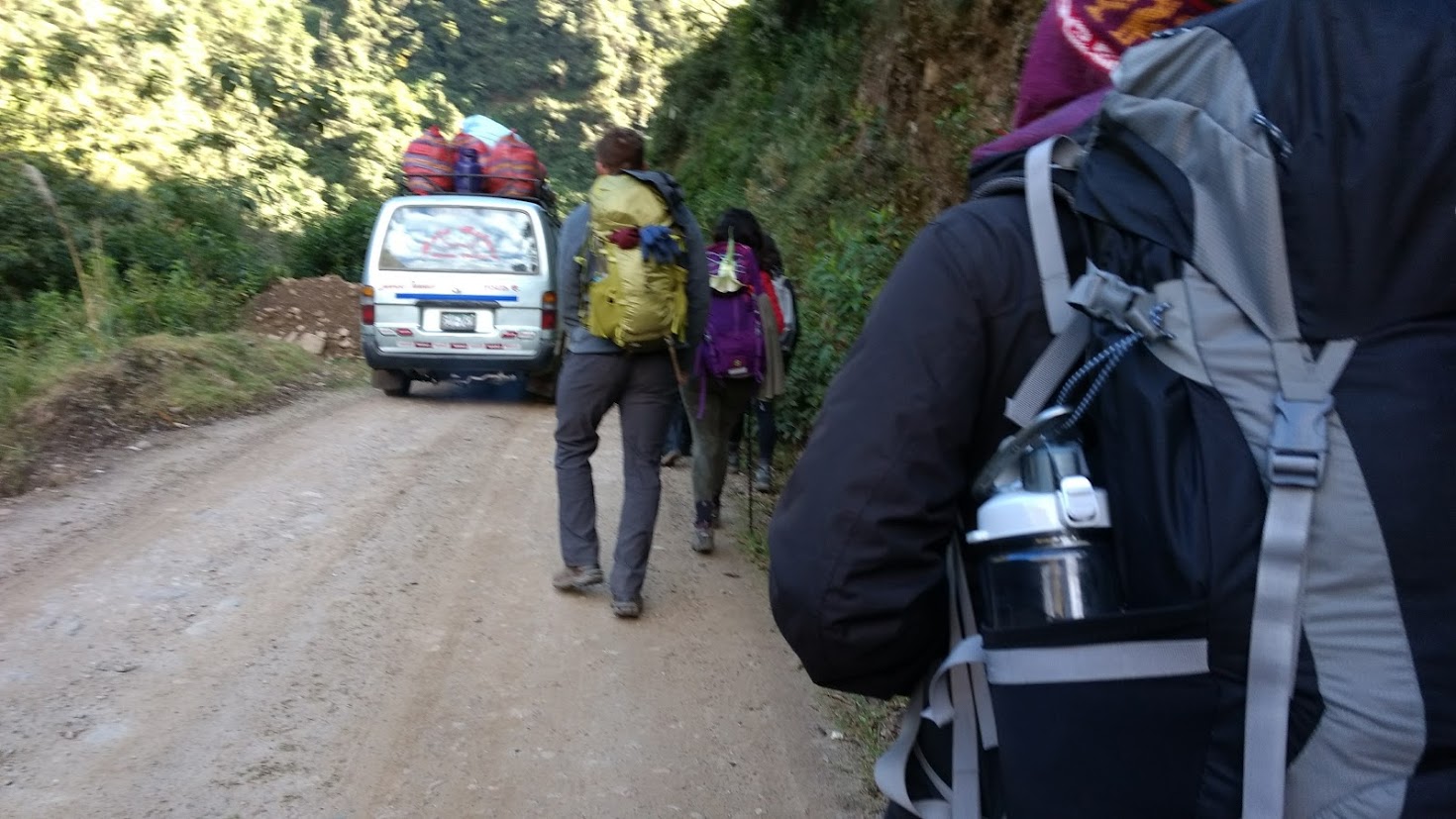 Corpo aquecido, arruma a cama e corre para o café da manhã. A caminhada do dia começou as 7:00, e logo após se distanciarmos um pouco do acampamento, o Sergio e eu ficamos um pouco desapontados…pois a caminhada até a parada para o almoço foi em uma estrada… com bastante movimento de vans.